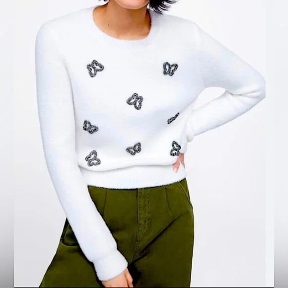Zara Sweaters Zara Knit Sweater With Appliqu White Butterflies Size S Poshmark